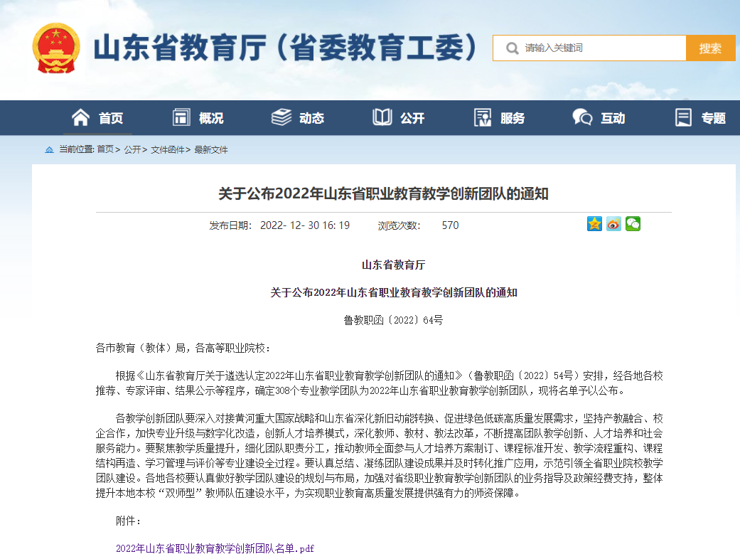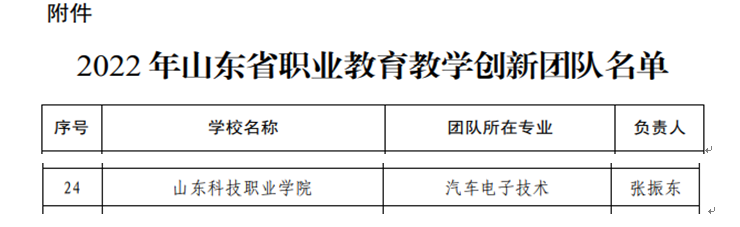 近日,省教育厅发布了《关于公布2022年山东省职业教育教学创新团队的通知》(鲁教职函〔2022〕64号),suncitygroup太阳成集团汽车电子技术专业教育教学创新团队获批立项。