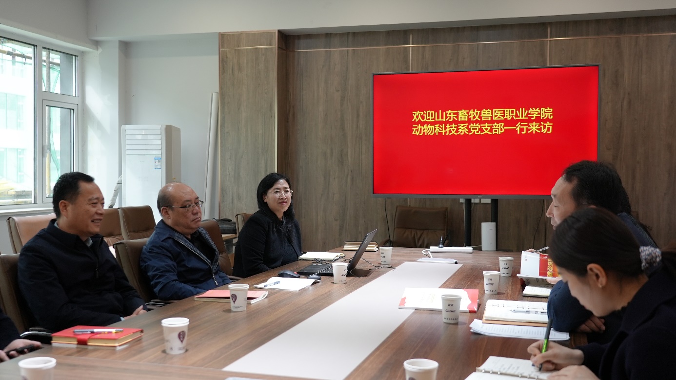 3月15日上午,山东畜牧兽医职业学院动物科技学院党支部书记赵满达一行4人来我院开展全国党建工作样板支部建设交流活动。tyc41183太阳成集团教师党支部书记、支部组织委员、宣传委员以及学院组织部等有关人员参加了交流。