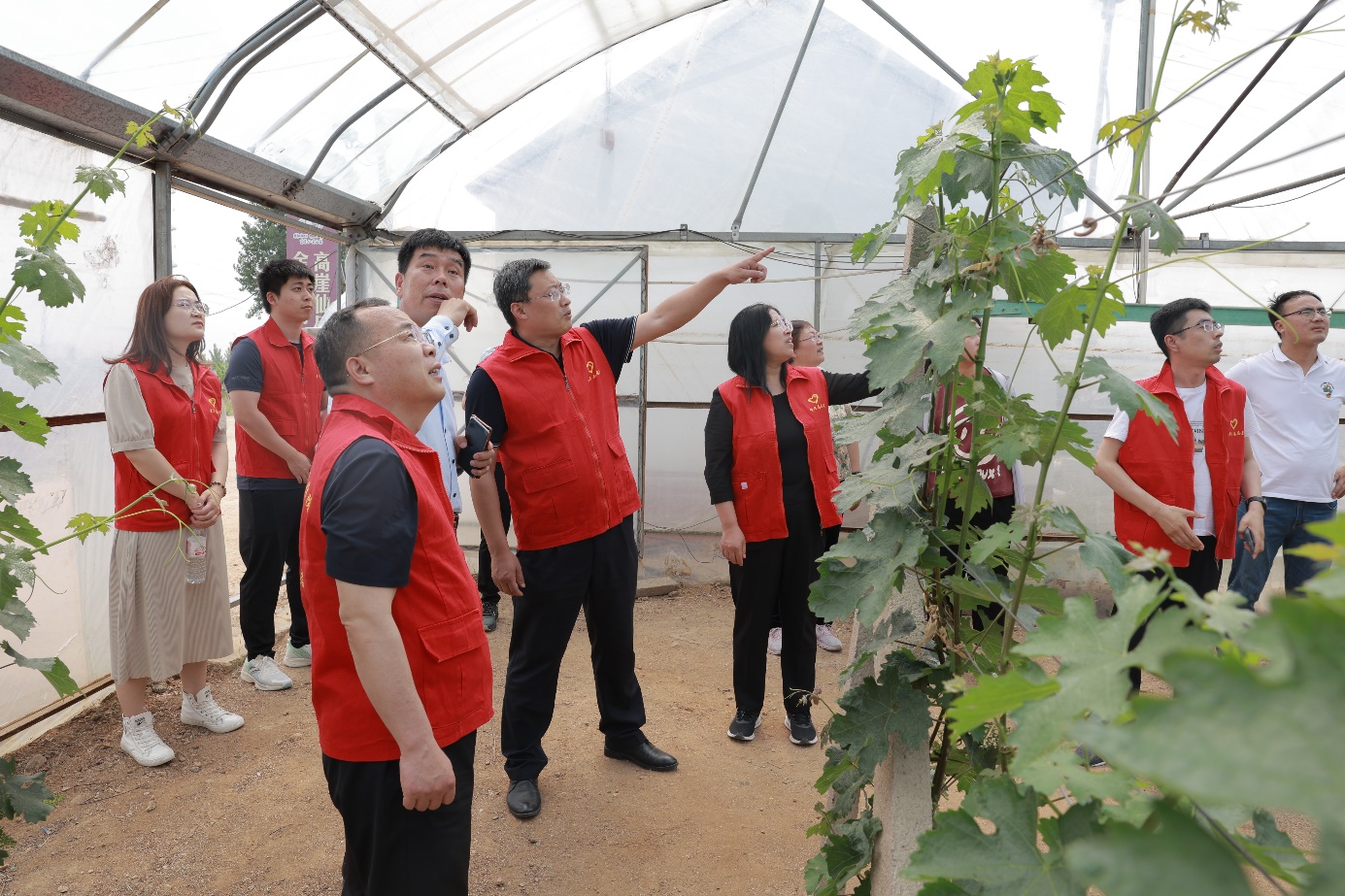 在引导员的带领下,全体党员依次来到东窝铺村、东白塔村、高崖仙月智慧农业基地、葡萄种植基地,了解社情民意、无公害栽培种植技术、葡萄种植技术,感受绿水青山就是金山银山的发展理念,体验科技强农研学路径。随后,党员们齐坐葡萄种植基地,召开座谈会,倾听基地建设艰辛奋斗历程, 了解农业项目发展情况,建言乡村振兴,畅谈主要收获,为当地经济发展出谋划策,共同为乡村建设、乡村旅游、乡村质量贡献智慧。