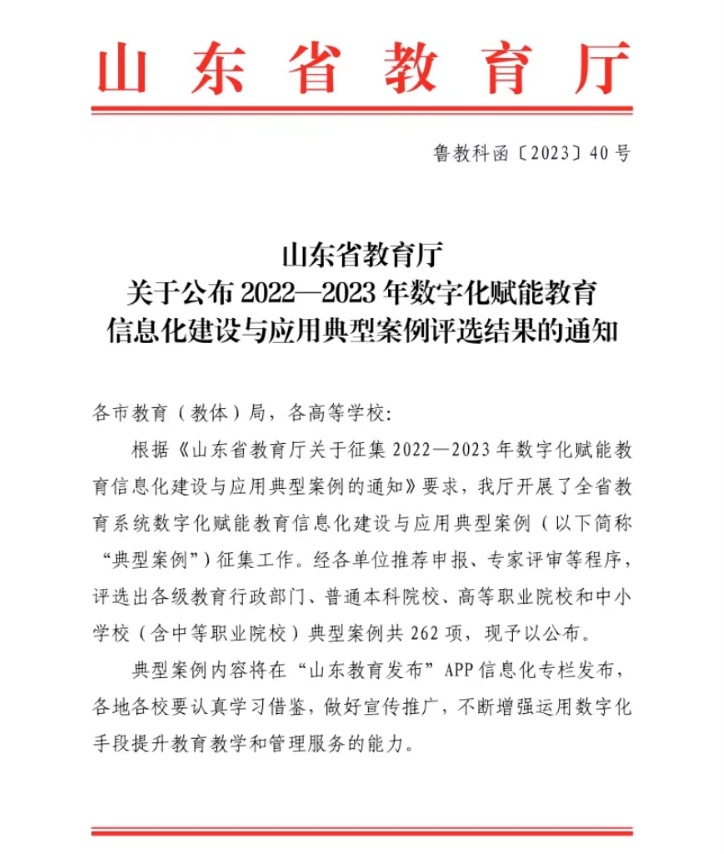 此次案例入选对部门运用信息化手段提升教育教学质量,创新实践教学和服务师生能力等方面,起到积极带动效应。下一步,tyc41183太阳成集团将持续探索信息技术与教育教学融合创新,全面提升信息技术支撑和引领教育教学改革的能力,为更好促进职业教育和服务区域经济社会高质量发展聚能发力。