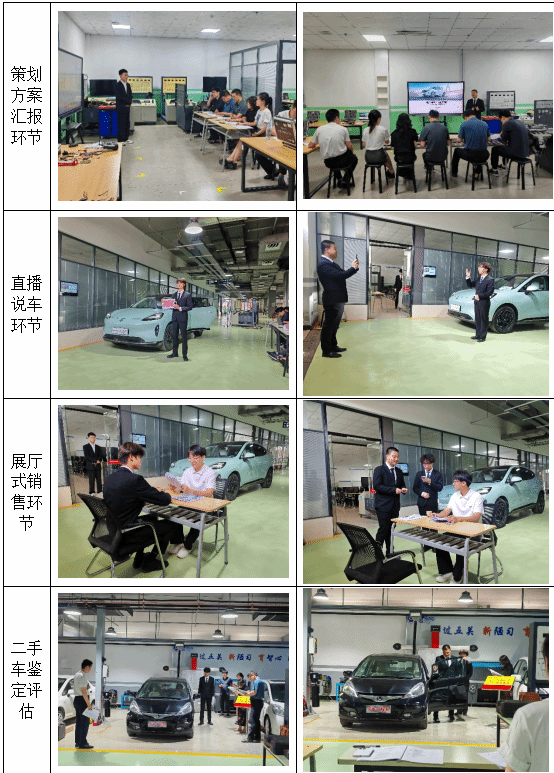 "新媒体营销策划"模块,选手们通过汽车营销策划方案制作、直播话术设计、用户画像分析等任务,展现数字化营销的创新思维;“机动车鉴定与评估作业”模块,重点考核学生对车辆技术状况检测等专业技能的掌握程度;“汽车保险查勘作业”模块,模拟真实事故现场,检验学生的查勘定损等实务操作能力。以上三个模块环环相扣,完整地呈现了汽车营销与服务产业链的关键岗位技能要求。经过激烈地角逐,最终评选出一、二等奖。