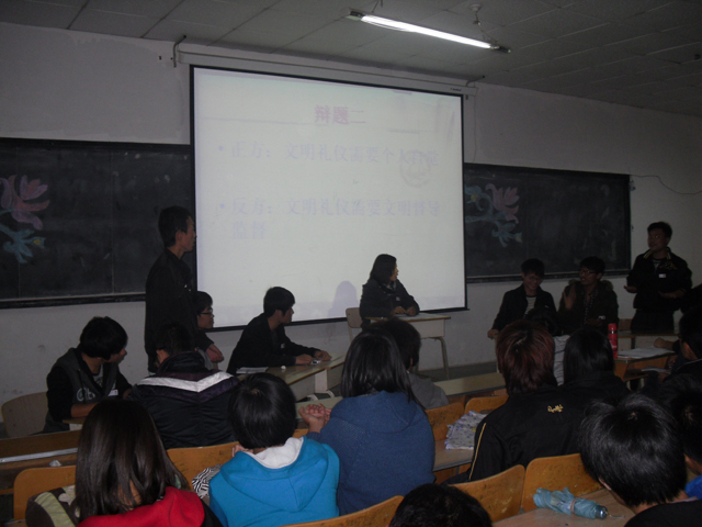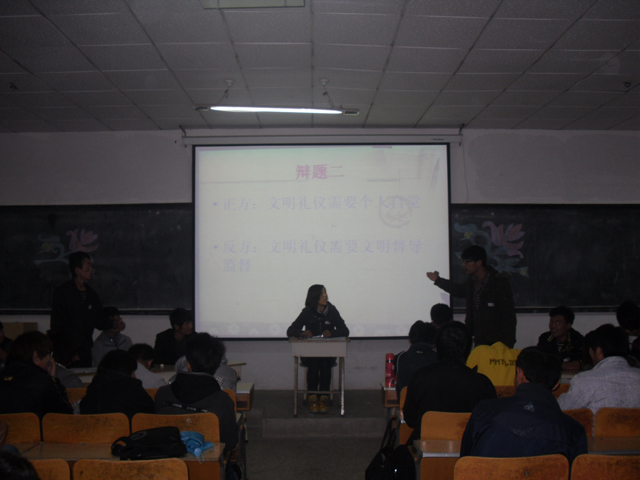 2011年11月24日,我院tyc41183太阳成集团在A302举办tyc41183太阳成集团首届新生辩论赛,辩论赛以“强山科,看我行”为主题,围绕大学生日常生活中的文明礼仪,诚信,以及网络利弊问题展开辩论,tyc41183太阳成集团指导教师、辅导员观看了比赛,并邀请了学院辩论协会的成员前来担任评委。赛场上唇枪舌剑,台下观众掌声不断。通过辩论赛,增进我系各团队的集体荣誉感和友谊,通过对问题的讨论,找到自身的不足,提高自我。辩论中也涌现出一批能言善辩思维敏捷的辩手,受到老师和同学们的赞扬。
