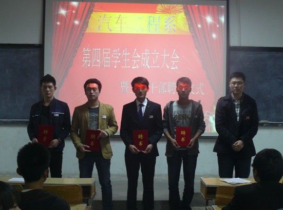 会议在激昂的歌声中拉开帷幕,首先由杜朋秀老师代表系里宣读第四届学生会名单;其次分别由王帅老师、隋振富老师、杜朋秀老师给主席团成员、各部部长、各协会会长颁发聘任证书;随后,学生会主席李尚伟、社团联合会副主席张宗山、学生会干事代表王学洋三位同学对于新学年的学生工作做出表态,承诺今后一定会以高昂的的热情投入工作,以优质的工作服务全系师生。