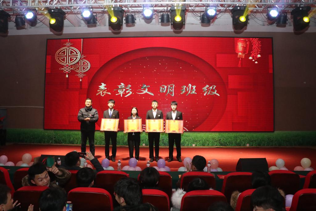 开场表演《舞狮》瞬间点燃气氛,曼妙舞姿的古典舞《芒种》。遥寄峥嵘岁月,红色足迹《风起云涌》传递出对祖国的满腔热爱。说唱《TIME》尽情展现出汽车学子昂扬向上的青春风采。相声《奋斗》激励广大学生不忘初心,砥砺前行。藏族舞《欢乐的舞蹈》秀雪域风华,展藏族英采。小品《西游记后传》重温经典。幽默情景剧《一如传销深似海》警示同学们远离传销、诈骗等的危害。魔术表演《Magic Show》娴熟的手法、高超的技艺带领同学们走进魔幻的世界。激情的演唱、火热的舞蹈、风趣的小品、变幻的魔术、精彩的情景剧等各类节目为观众带来了一场视听盛宴。晚会高潮迭起,掌声此起彼伏。最后,晚会在所有演职人员合唱《相亲相爱》的歌声中落下帷幕。晚会期间还对表现优异的校级“优秀班级”、“学生会部门之星”“学生会优秀部门”进行了表彰。