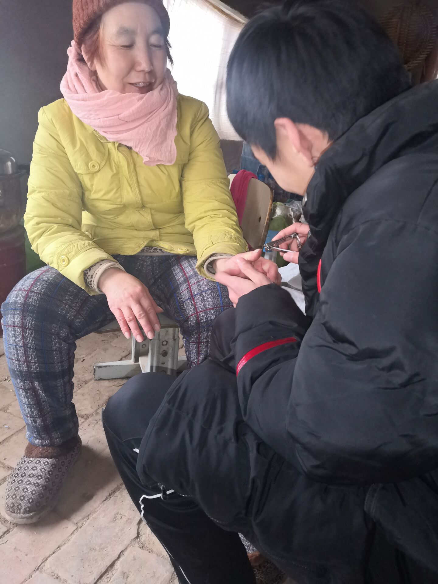 为母亲修剪指甲