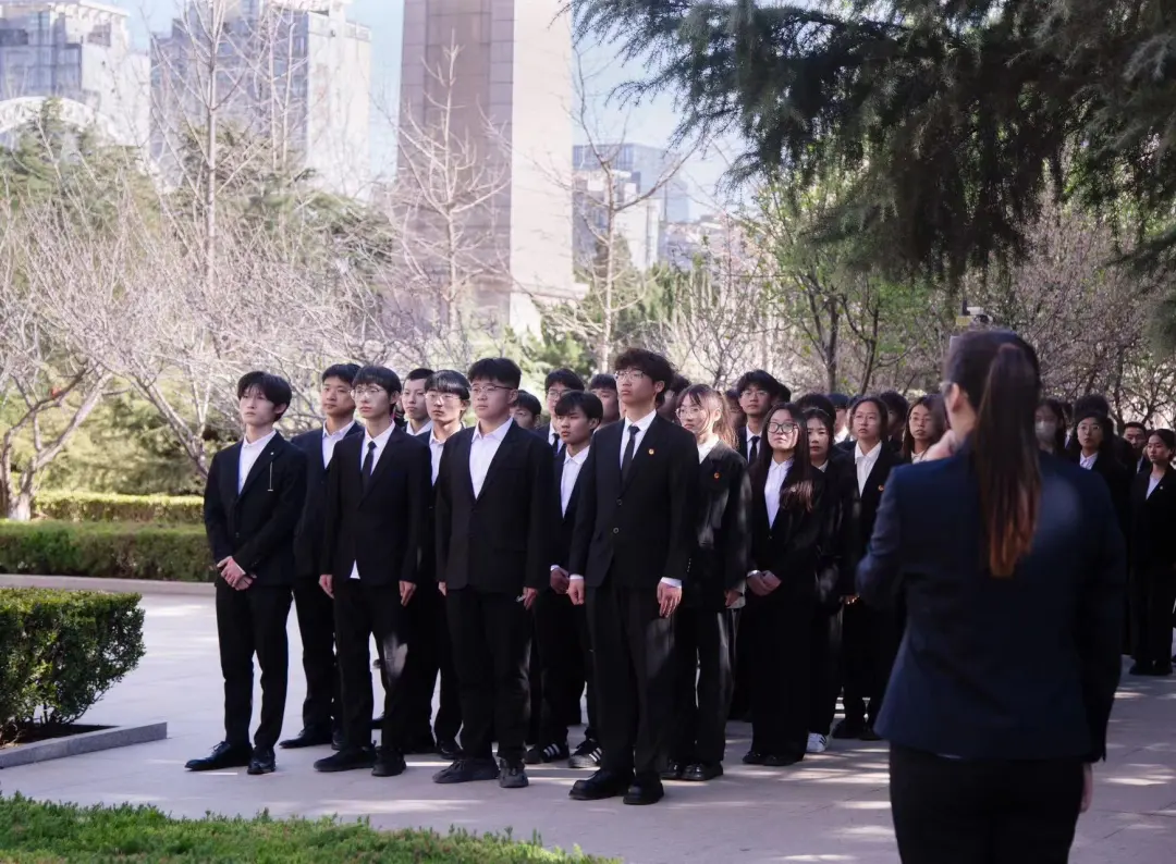 活动内容共分为四项。活动进行第一项,全体立正,奏唱国歌。在激昂的旋律中,大家神情肃穆,共同表达对祖国的热爱和对先烈的敬意。活动进行第二项,全体人员向烈士默哀。这一刻,时间仿佛凝固,空气中弥漫着对先烈的深深追忆,默哀结束后,在革命烈士英名碑前敬献花圈表达我们对先烈的无眼敬意和感激。活动进行第三项,主持人带领大家重温入团誓词,一句句坚定的警言,在陵园上空回荡,这是对革命先烈的承诺,也是对自己的鞭策,活动进行第四项,参观瞻仰烈士墓区。听着讲解员的讲述,那些为了国家和人民牺牲的先烈们的事迹,如一幅历史长卷在眼前展开,他们的精神将永远激励着我们前行。